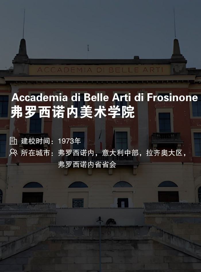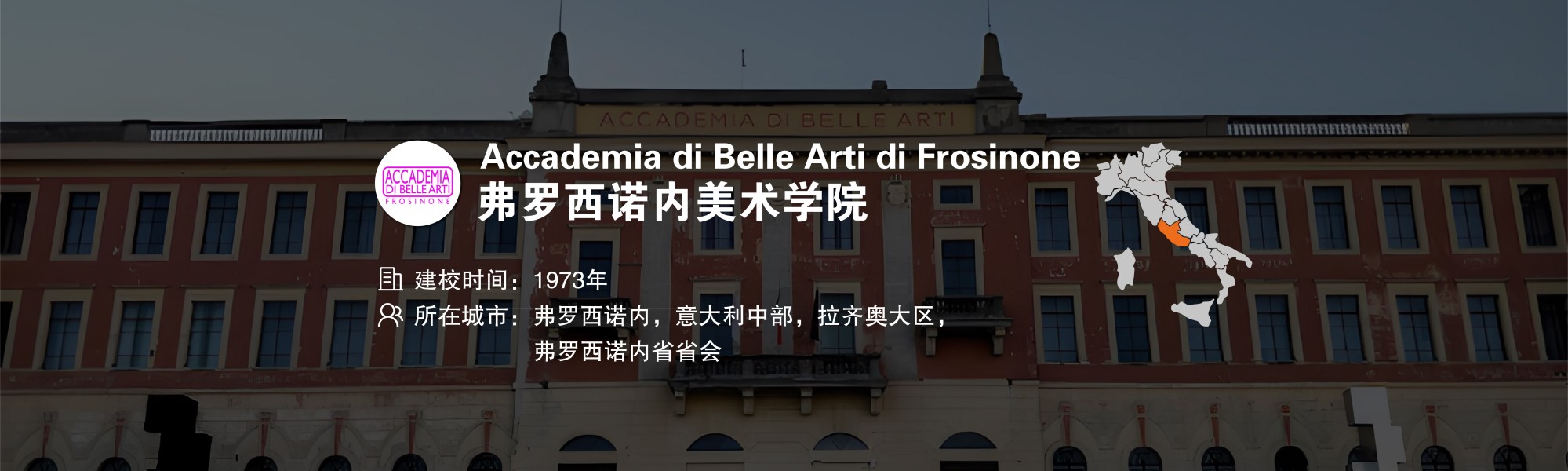 弗罗西诺内美术学院(Accademia di Belle Arti di Frosinone,简称弗罗西诺内美院)于 1973 年创立,位于意大利中部的弗罗西诺内市中心,主校区分布在两栋历史悠久的宫殿建筑内,是意大利教育部直属管理的 25 所国立美院之一。