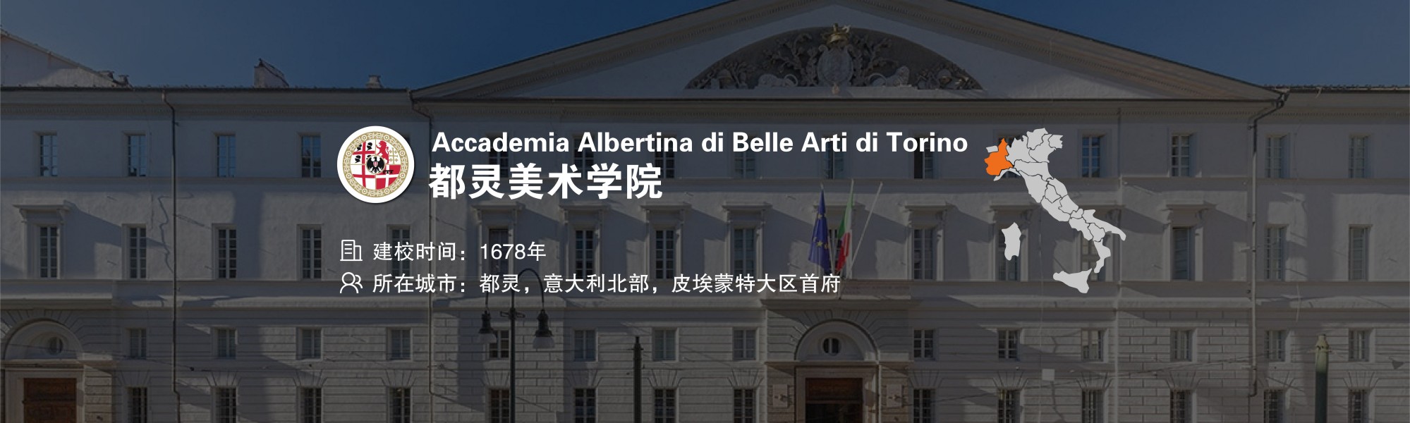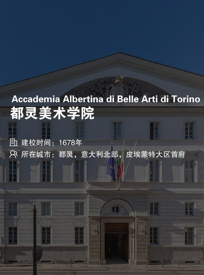 都灵美术学院(Accademia Albertina di Belle Arti di Torino,简称都灵美院)于 1678 年由萨沃依公国摄政太后玛利亚·乔瓦娜创立,其学院美术馆收藏了萨沃依皇室家族与蒙西纽尔・莫西侯爵的众多珍品,为学生提供了丰富的学习研究素材。学院主校区位于意大利都灵历史中心街区,毗邻波河,是意大利教育部直属管理的 25 所国立美院之一。